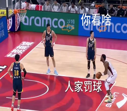 然而,讓人哭笑不得的是,約翰遜罰球的時候,胡明軒往前場看,不知道在看什么,也許是杜鋒在那里叫,也許是有搞笑的事……