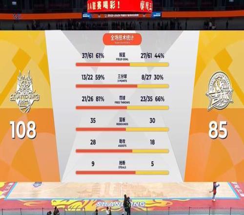 108-85!山東男籃真是越來越好了,主場大勝吉林隊23分,喜提7連勝的同時,排名也反超遼寧隊,來到了第8位。強援珀賽爾在絕殺了北京隊之后,此役再次爆發,短短3節就獨砍38分。高詩巖手感甚佳,3投3中,命中率100%。