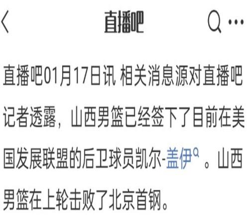 當然,山西男籃也有自己的辦法,就是更換外援,上賽季他們就不斷更換外援,本賽季雖然有外援更換限制,但他們已經裁掉了黑根斯,根據媒體報道,前不久代表美國男籃打了世預賽的凱爾蓋伊已經和山西男籃完成了簽約,按照目前的情況來看,他大概率會替換奈特。