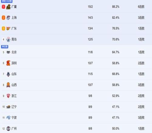 江蘇最近崛起,但這輪輸球之后停滯。四川已經(jīng)17連敗了。