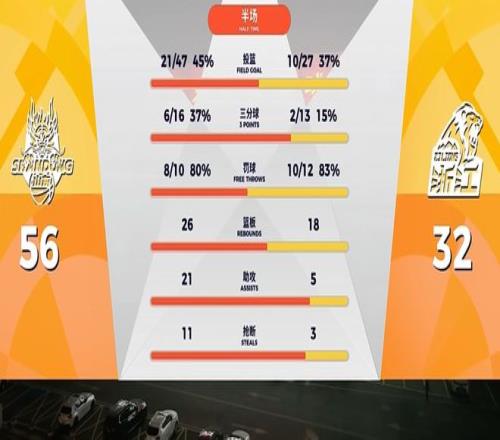 半場打完,山東在鮑威爾、陶漢林、克里斯合砍42分的帶領下,取得56-32領先廣廈,幾乎可以說是完全碾壓廣廈!得分籃板助攻搶斷,數據全面領先廣廈,胡金秋正負值-25,孫銘徽-29,布朗毫無狀態,廣廈三巨頭合計僅得7分。