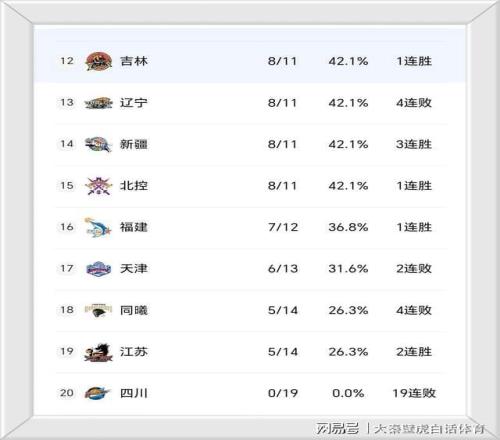 ②、4連敗的遼寧男籃排名僅第13位,與第15位的北控戰績相同;