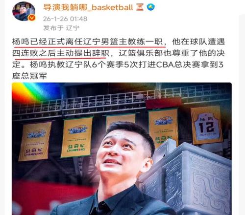 在賽后,隨后大家也是看到了,有很多媒體人傳出,楊鳴向遼寧隊提出了辭職申請,要告別遼寧隊執教生涯。