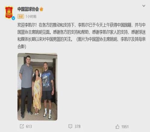 NBA官網及其中文網站更新球員信息,李凱爾的國籍欄由“中國”變更為“美國”,這一更新,被視為對其現有身份狀態的確認。