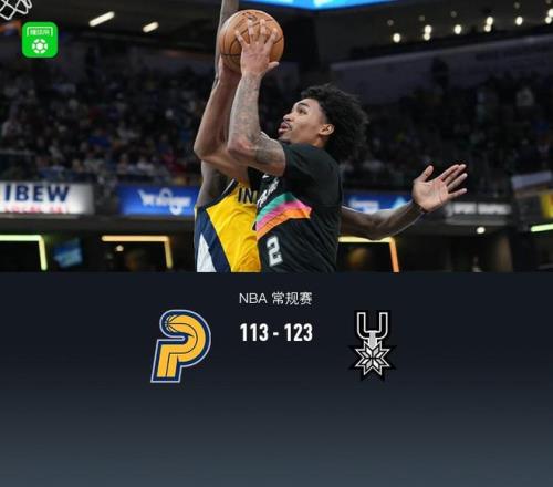 第四節,開節馬刺凱爾登連續兩記三分再度領先至13分,步行者西亞卡姆、謝潑德站出來得分縮小分差,馬刺哈珀立刻回應,節中段馬刺凱爾登、哈珀繼續聯手得分領先來到17分,后半節步行者內史密斯、西亞卡姆、內姆布哈德相繼得分縮小分差,來到最后3分鐘內姆布哈德、波特相繼三分追至8分,馬刺福克斯超遠三分穩住局面,步行者無力繼續反撲,最終步行者113-123不敵馬刺。