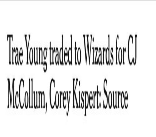 北京時間1月8日,亞特蘭大老鷹隊與華盛頓奇才隊達成一筆交易:四屆全明星控球后衛特雷-楊將加盟華盛頓,而奇才隊的資深雙能衛CJ-麥科勒姆與鋒線球員科里-基斯珀特則將前往亞特蘭大。