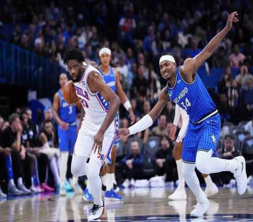 中場休息回來,76人完成本場首次單節得分30分,魔術被限制連續三節得分不足30分。雙方持續交替領先纏斗至76人62-63落后,76人連得5分反超比分,布萊克三分命中。76人一波6-0攻勢擴大優勢,魔術追到差3分,76人連得5分擴大8分優勢。魔術回敬一波7-3攻勢追分,76人單節30-25凈勝5分,三節結束76人83-79反超魔術。前三節比賽,76人三分僅22中3,馬克西20中9得到26分、恩比德14中5得到18+7、巴洛11+8;魔術三分僅22中4,班凱羅12+9+7引領魔術4人得分上雙。