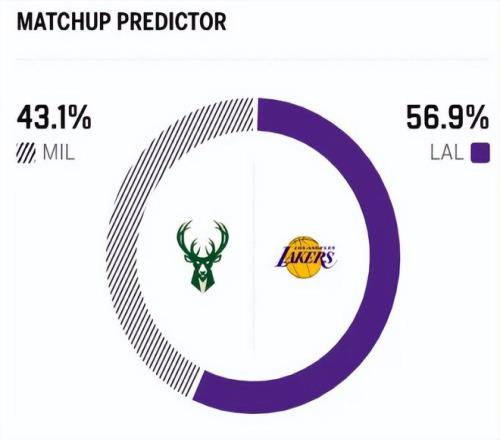 賽前,美媒ESPN對本場比賽進行了勝率預測,湖人隊勝率高達56.9%,雄鹿隊勝率則僅有43.1% ,差距非常明顯。