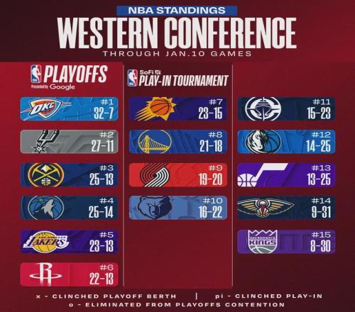 最后來看看各隊最新排名,快船距離西部第六還差8.5個勝場。等到常規賽結束時,你覺得快船能沖進西部前六嗎?