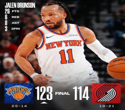 楊瀚森未出場 尼克斯終結開拓者5連勝