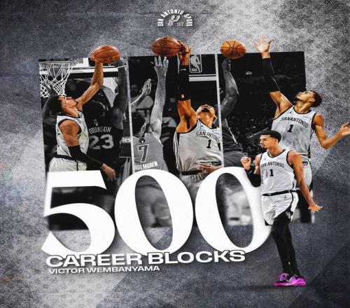 此役,文班亞馬還創下了NBA歷史第2的神跡。本場比賽文班亞馬送出生涯第500次蓋帽,成為歷史第二年輕送出500次蓋帽的球員(僅次于約什·史密斯)。