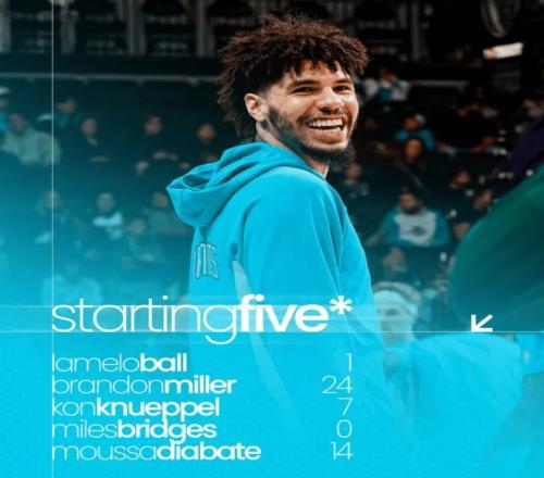 首發陣容方面,黃蜂隊這邊,教練排出的最新首發五人組為:鮑爾、米勒、克尼普爾、布里奇斯、迪亞巴特;湖人隊這邊,海斯(左腿筋酸痛)、里夫斯(左小腿拉傷)以及蒂耶羅(右膝內側副韌帶扭傷)將缺陣,首發陣容則為:勒布朗-詹姆斯、杰克-拉拉維亞、德安德烈-艾頓、馬庫斯-斯馬特、盧卡-東契奇。
