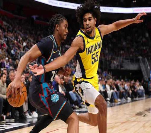 活塞上一次主場108-105險勝太陽,步行者上一次主場127-119戰(zhàn)勝鵜鶘,本賽季前兩次交鋒活塞均戰(zhàn)勝步行者。本場活塞缺少摩爾,步行者缺少哈利伯頓、托平、內姆哈德、內史密斯與馬瑟林等多位主力。首節(jié)前7分鐘,活塞用超級防守限制步行者僅得到2分,且活塞多點開花率先取得24-2領先優(yōu)勢。步行者連追5分,活塞一波7-4攻勢擴大優(yōu)勢,首節(jié)比賽結束活塞31-11領先步行者。首節(jié)活塞24中11,其中三分7中3,坎寧安6中4得到11分3籃板與杜倫7+2+2;步行者20中4,其中三分6中0。