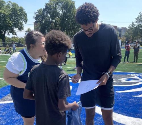 球場之外,普爾為社區發放食物,向斯坦頓小學的老師捐贈物資。
