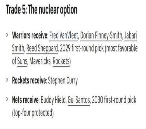 方案五:將庫里送往缺少奪冠核心控衛的火箭