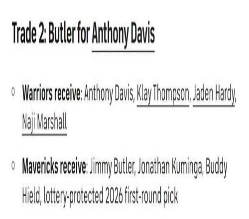 勇士得到:濃眉+克萊+哈迪+馬紹爾;