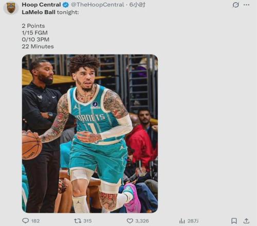 北京時間1月22日,NBA常規賽:黃蜂主場87-94不敵騎士。黃蜂球員拉梅洛-鮑爾打出本賽季最差的一場比賽:替補出戰22分18秒,投籃15中1,三分10中0,得到2分5籃板7助攻2搶斷1蓋帽2失誤4犯規,正負值-16。