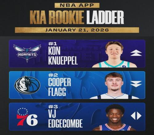 三球本場比賽投籃命中率只有6.7%,成為NBA本賽季單場出手15+的最低命中率。此外,三球也是本賽季第三位單場三分球10中0的球員,此前兩位分別是加蘭和小賈巴里-史密斯。同樣是今天,NBA官方公布了最新一期的新秀榜。