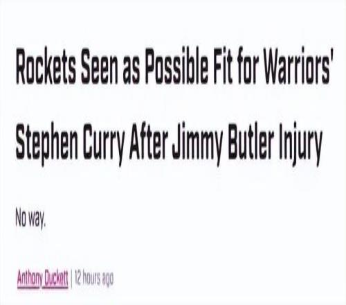 《CBS Sports》記者Sam Quinn發(fā)文建議,火箭應該趁勇士傷病連連,嘗試招募庫里加盟火箭,和杜蘭特重聚休斯頓。