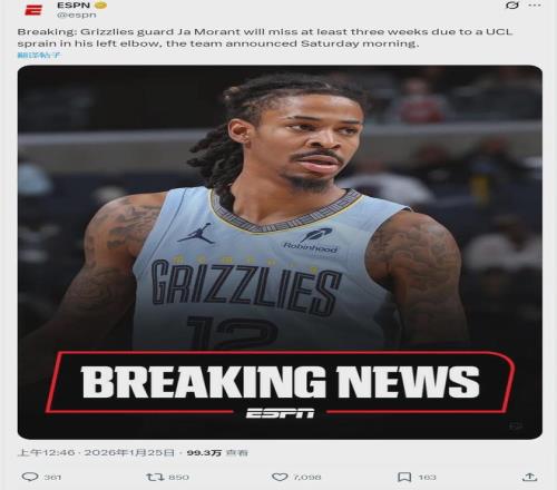 北京時間1月25日,灰熊官方宣布:莫蘭特左肘尺側副韌帶(UCL)扭傷,將在3周之后接受復查。保守估計,莫蘭特也得全明星之后才能復出。灰熊官方表示,莫蘭特不需要手術治療。距離交易截止日僅剩11天,莫蘭特還會離隊嗎?