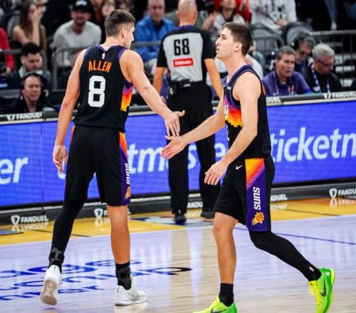 太陽本賽季能夠打出遠超預期的表現,愈發成熟的布克功不可沒,他在牽制防守后的傳球,是太陽能夠打出流暢整體進攻的基石,此役在布克無法出戰的情況下,太陽只能靠個人強打去終結,雖然前兩節狄龍和阿倫得分都達到了兩位數,但是全隊總的助攻只有個位數,這也導致了命中率不高,只能帶著10分的劣勢,回到了中場更衣室。