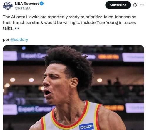 面對杰倫約翰遜這樣的表現,名記Evan Sidery曝出老鷹隊已經將其視作球隊新的建隊核心,舊核心特雷楊已經被擺上貨架。