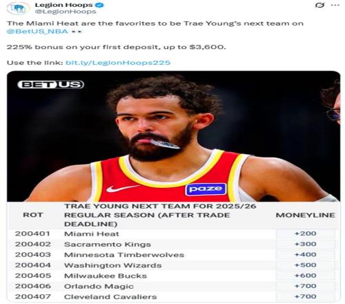 而在美媒公布的特雷楊下家賠率中,熱火高居第一,國王、森林狼分列2、3,奇才、雄鹿、魔術和騎士排在4-7名。