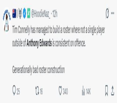 美球迷:森林狼一直都在浪費愛德華茲,他們這群球迷也荒唐至極,這支球隊其實除了華子都可以被交易。