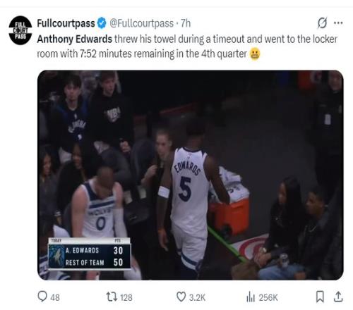 北京時間1月1日,森林狼102-126慘敗老鷹,這場比賽是一場一邊倒的態勢,首節森林狼就落后7分,第二節森林狼的防守全線崩潰單節凈負14分,半場已經落后21分,第三節本該奮力追分可又被繼續拉開,末節芬奇早早投子認負,這也催生了愛德華茲暴怒離場。