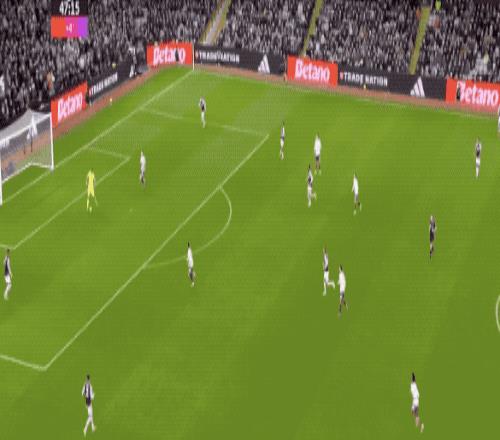 下半場開始后,替換B費登場的利桑德羅·馬丁內斯禁區外起腳遠射,皮球稍稍偏出。