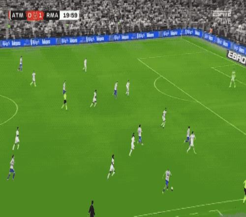 隨著比賽的進行,馬競逐漸加強進攻,庫爾圖瓦越來越忙,第38分鐘,馬競上演三連擊,繼續考驗皇馬的防線。