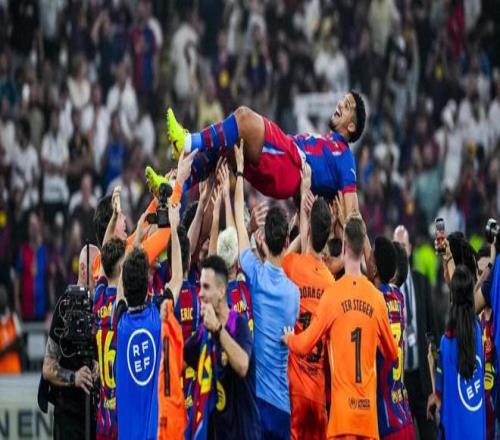 吉達的西班牙超級杯決賽賽場見證了阿勞霍職業生涯中或許最為特別的一天。此前因心理健康問題缺陣許久的烏拉圭人宣告回歸,而這次復出的劇本堪稱完美:他不僅重新踏上賽場,更隨球隊捧起冠軍獎杯,并且作為球隊代表高高舉起了這座冠軍獎杯。