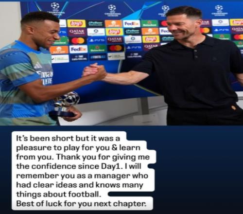 姆巴佩寫道:“雖然時間短暫,但能為您效力并向您學習,我感到非常榮幸。感謝您從一開始就給予我的信任。我會永遠記住您是一位思路清晰、對足球了如指掌的教練。祝您在人生的下一個階段一切順利?!?/p>