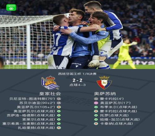 點(diǎn)球大戰(zhàn)皇家社會(huì)65奧薩蘇納,卡泰納失點(diǎn)