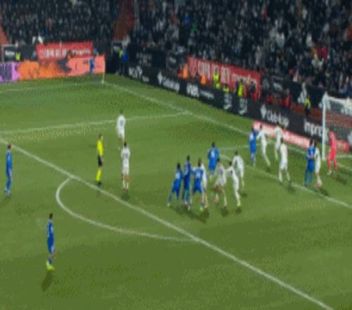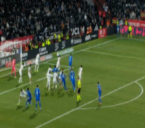 下半場補時第1分鐘,皇馬右側角球機會,貢薩洛-加西亞躍起頭球得分,皇馬2-2扳平!