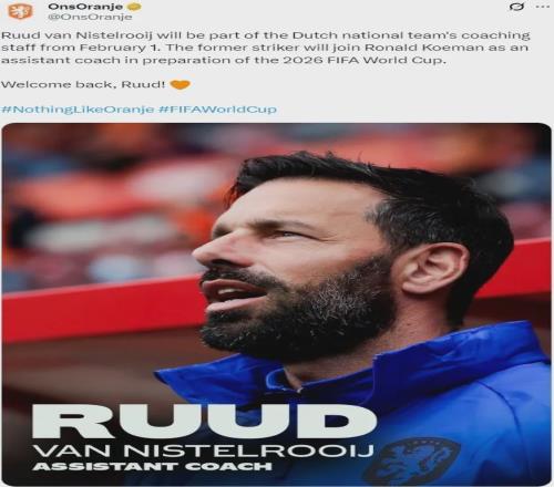 官方:荷蘭宣布范尼進入教練組,他將擔任科曼的助教。