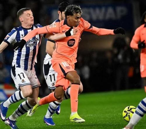 領頭羊巴薩吃到了近兩個月以來的首場敗仗,客場1-2不敵皇家社會。這一場比賽,巴薩是實力占優的一方,開場不到1分鐘的時間,奧亞薩瓦爾的進球就讓巴薩驚出一身冷汗,好在越位在先進球無效。隨后巴薩穩住陣腳,一波波攻勢威脅皇家社會,但是費爾明、德容、亞馬爾的進球都因為越位被吹掉。第32分鐘場上0-0的比分終于被改寫,格德斯傳中,奧亞薩瓦爾在后點左腳凌空抽射破門。