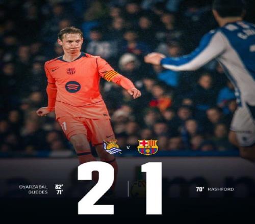 下半場替補登場的拉什福德成為巴薩為數不多的亮點,第70分鐘他接亞馬爾精妙傳中頭球破門,幫助球隊艱難扳平比分。但巴薩的喜悅僅持續1分鐘,皇家社會便迅速反擊,索萊爾頭球被撲后機敏回做,格德斯禁區右側凌空抽射完成致命一擊,比分再度改寫為2-1。此后巴薩發起狂攻,孔德頭球擊中橫梁,替補登場的萊萬多夫斯基也多次制造威脅,補時階段角球機會再度中柱,全場五次擊中門框讓巴薩空有74%的控球率和16腳射門,卻始終無法再度扳平比分。