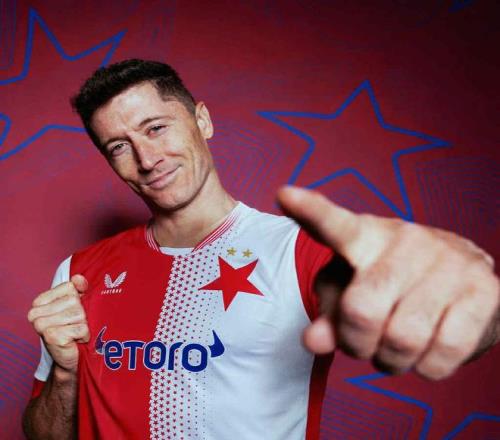 在萊萬打進烏龍后,布拉格斯拉維亞在社媒上放上了一張萊萬的照片并向AI提問:“嘿,請讓他穿上斯拉維亞的球衣。”