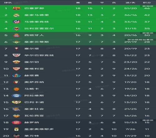 北京時間12月22日,西甲第17輪結束了9場比賽,最新積分榜如下!