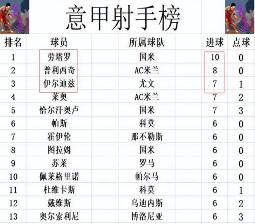 射手榜方面,勞塔羅10球繼續(xù)領(lǐng)跑,普利西奇8球位列第2。伊爾迪茲今天打入一球后,追上萊奧和恰爾汗奧盧,三人7球并列第3。圖拉姆,霍伊倫,蘇萊,奧爾索利尼等人6球剛好擠入前十。
