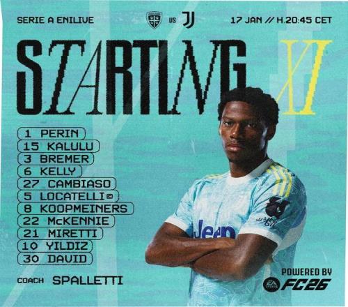 尤文客戰卡利亞里:伊爾迪茲首發,戴維、麥肯尼出戰