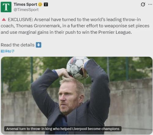 泰晤士報(bào)消息,世界頂尖的界外球教練托馬斯-格羅內(nèi)馬克一直在以顧問的身份與阿森納合作,他參觀了槍手的訓(xùn)練場,并分享了自己的技術(shù)和知識,北倫敦豪門正進(jìn)一步致力于把定位球戰(zhàn)術(shù)打造成他們的制勝武器。