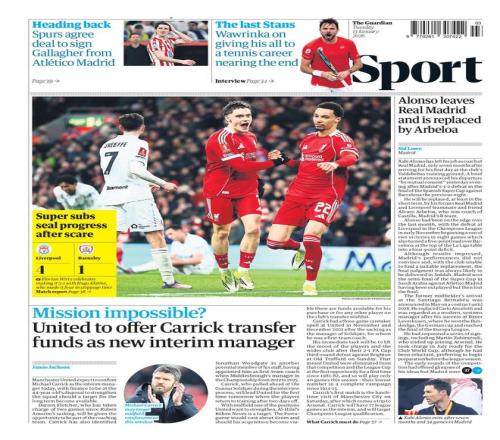 據(jù)英國(guó)《衛(wèi)報(bào)》報(bào)道,曼聯(lián)的臨時(shí)主帥選帥大幕已經(jīng)徐徐落下,卡里克預(yù)計(jì)周二將會(huì)正式官宣上任。該報(bào)還說,俱樂部愿意為這名44歲的教練提供足夠的資金支持,但引援前提是出現(xiàn)了合適的目標(biāo)球員可以加強(qiáng)球隊(duì)陣容。