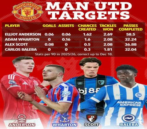 青訓中場科比·梅諾和6000萬歐元鐵腰烏加特也面臨著不確定的未來,所以曼聯注定會在中場位置引援。