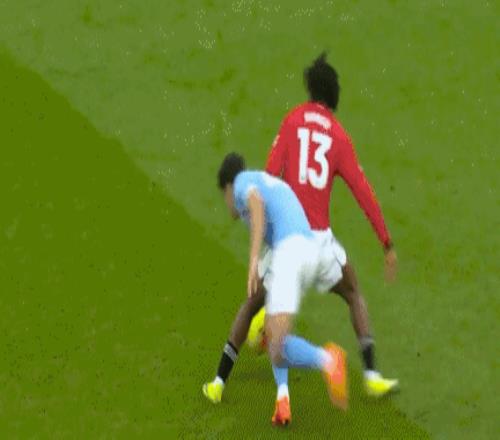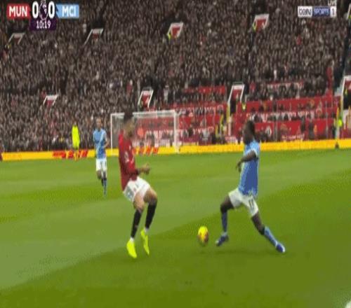 第10分鐘,羅德里分球左路,多庫變向突破,達洛特踹到對手的膝蓋,但裁判手下留情,僅出示黃牌警告,曼聯逃過紅牌。