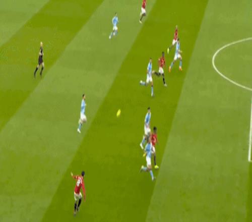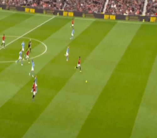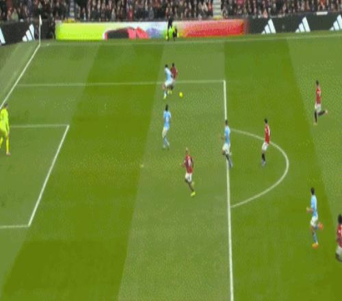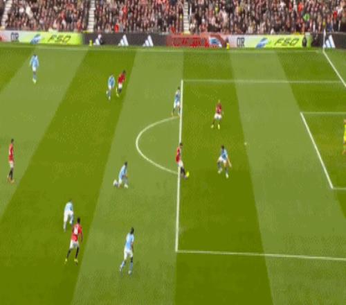 第32分鐘,羅德里后場回傳失誤,曼聯球員B費禁區內無私橫傳,胡桑諾夫搶在姆伯莫之前完成關鍵攔截。