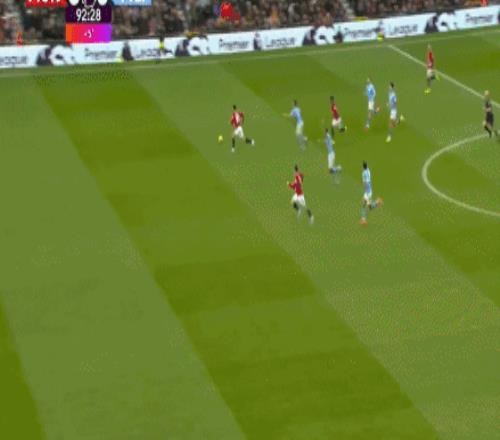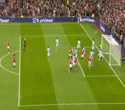 第4分鐘,曼聯球員多爾古左路低平球傳中,胡桑諾夫關鍵解圍,隨后B費開出角球,馬奎爾近距離頭球攻門擊中橫梁彈出,曼城逃過一劫。