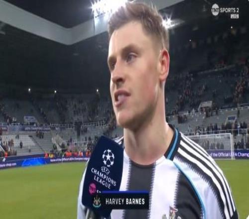 歐冠聯賽階段第7輪,紐卡主場3-0戰勝埃因霍溫,本場比賽打入1粒進球的紐卡前鋒哈維-巴恩斯賽后接受了TNT體育的采訪。