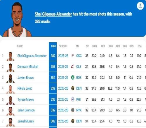 怎會(huì)全靠罰球亞歷山大本賽季運(yùn)動(dòng)戰(zhàn)進(jìn)球數(shù)高居聯(lián)盟第一
